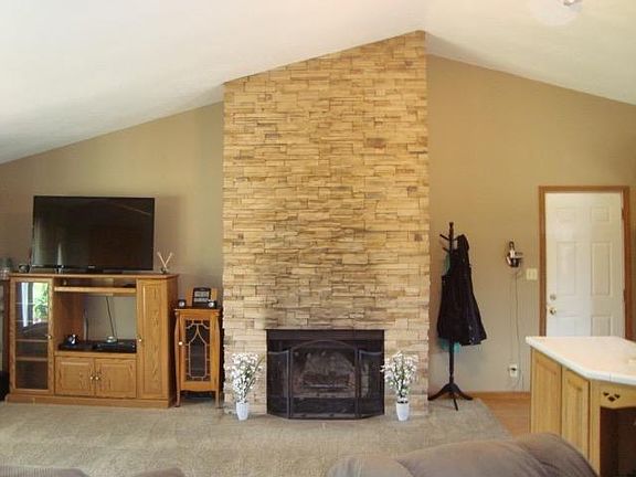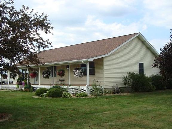 Great opportunity to own newer well cared for ranch in country. Tastefully decorated open concept home. Living room has vaulted ceilings with fireplace. Hickory cabinets and island in kitchen, dining area. Three nice size bedrooms, master offers full bath, walk-in closet and hardwood in second bedroom. Six panel doors throughout house. Main floor laundry, over sized two car garage. Basement is plumbed for 3rd bathroom and studs up for room separation ready to finish if needed. Great 2.2 acre corner lot with storage shed, fenced for dogs, deck, fruit trees and more.