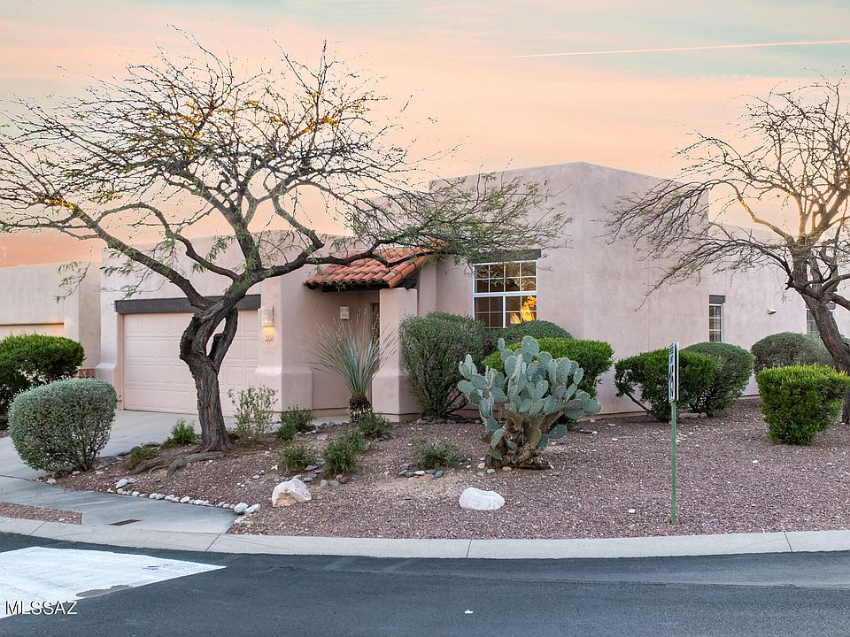Nestled in a petite gated community in the Catalina Foothills, this individual house offers stunning mountain views in the Sierra Catalina Estates neighborhood. High ceilings and a thoughtful floorplan make this home feel spacious and serene. The kitchen has substantial storage, a peninsula for entertaining, and opens to a sitting room with fireplace and doors to covered patio. Enjoy the Generous primary suite with large bathroom featuring separate toilet, two sink vanity, and walk-in closet. Two additional bedrooms, hall bathroom with tub, and laundry/mud room which leads to the two car garage. HOA amenities include pool and spa.This is on a premium lot with only one immediately adjacent house for added privacy and quiet.