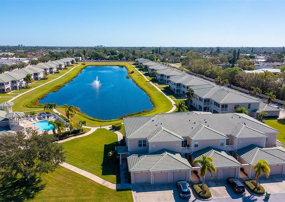Welcome home to the amenity rich, fully gated resort lifestyle community of Hidden Lake! Upon entering this home, you are immediately warmly welcomed by the abundance of natural light from this corner end unit located on the top floor offering 3 bedrooms and 2 full baths, and spectacular full lake views from your private lanai! The high ceilings and open floorplan of the main living areas are great for all of your entertaining needs. Updates include luxury vinyl plank flooring, solid wood cabinetry, new appliances throughout, built-in wardrobe closet in the master bedroom, dual vanities and a 1 car garage with new garage door opener. Enjoy the sparking pond from your spacious screened-in Lanai. This home is offered fully furnished (including lanai furniture that was purchased on 5/1/22). Location… Location… Location… just steps away from the amenities center which include: the pool, hot tub, fitness center, game room & library. Did we mention location? Hidden Lake is just a short drive to the pristine gulf beaches of Anna Maria Island where you can enjoy the coastal lifestyle you have always dreamed of! Right around the corner from restaurants, shops, and transportation. Come check out Hidden Lake and call this property your home today!