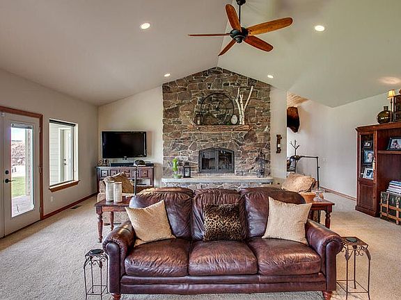 Escape to the privacy of your own oasis on this stunning acreage home. Every detail was carefully selected and quality crafted. Single level living w/ show-stopping mountain & river views, expansive kitchen w/ oversized island, granite counters, stainless appliances & beautiful cabinetry.Spacious master suite complete w/ fireplace, walk-in tile shower, soaking tub & dual vanity.Your living space extends to the yard, with an expansive covered patio and in-ground pool. 900 sq ft. detached shop.