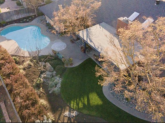 Impeccable Easter Brook home nestled in a charming garden view neighborhood located in NW Fresno. This well-cared for 4 bedroom, 2 bathroom home includes a chefs kitchen featuring quartz countertops, Thermador gas cook top, stainless steel oven, refrigerator, brand-new dishwasher, sitting area, pantry, and a picture window looking out to the backyard. The sizeable great room boasts wood floors, high ceilings, wood beams, and a brick fireplace. The formal dining area and inviting living room feature large windows allowing natural light to flow throughout. Each bedroom is roomy (one currently used as a home office) all with neutral colors. The oversized primary suite with its own bathroom comes with French doors that open to a backyard oasis complete with pool, large covered patio, mature landscaping, and fruit trees. This backyard will be a central gathering place during Fresno's hot summers and the patio a welcome retreat once the sun sets.