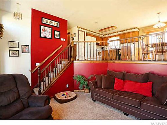 Break Bread Together. Make every meal family time when you dine in the sunny, kitchen with beautiful hardwood floors, glass sliders to oversize deck and overlooking a warm and inviting living room with cathedral ceiling and gas fireplace. Featuring 4 bedrooms, 2 full bathrooms, additional spacious family room, appliances included. This lovely home sits on just over a 1/2 acre lot. Beautiful country setting located in Starpoint school district. This one is easy to call HOME.