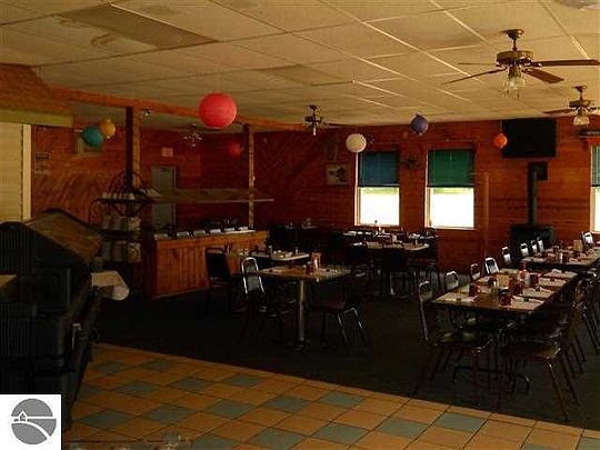 RESTAURANT BUSINESS! Currently in operation, well maintained, seating approx. 100, small cafe area plus 28x50 dining room perfect for buffets, banquets, etc. - includes fixtures & equipment, some updates, newer walkin cooler, pine & drywall interior! All includes a large 2BR, 1BA home for added rental income! The perfect location just 1/2 mile to Manistee Lake, and convenient to snowmobile trails & State land to catch the resort and recreational traffic!!