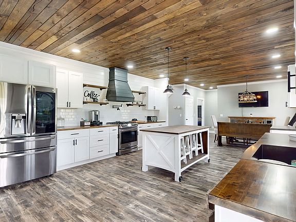 Welcome to the southern luxury-- 3 beds, 3.5 baths with an additional bonus room/suite space on 5 stunning acres! Enjoy delicious home-cooked meals in your state of the art eat-in kitchen with all the finest bells and whistles like a pot-filler, black stainless steel refrigerator, and more! You will fall in love with all the gorgeous details throughout the home such as the beautiful shiplap accent wall in the primary bedroom, custom light fixtures, and beautiful backsplash in the kitchen. Entertaining will be a breeze with functional spaces like the wet bar in the living room, a covered patio out back, and a gazebo and outdoor furnace area. This home is full of extra storage with linen closets in multiple bathrooms and a 24x36 2 car garage/storage shed out back!