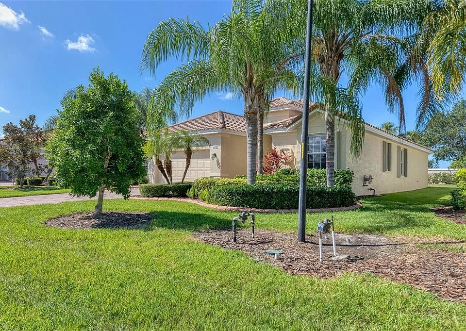ALL OFFERS REVIEWED on WEDNESDAY, JUNE 15 at 2:00. Beautiful Cascades at Sarasota is an active 55+ gated community with a manned front gate and 24-hour cameras, 150 acres, 452 homes. Located 3 miles from Sarasota/ Bradenton Airport, 5 miles from UTC Mall and Benderson Park, conveniently located to Sarasota healthcare facilities, Marina Jacks, Marie Selby Garden, Siesta Beach, Lido Beach and area golf courses. The popular St Kitts model, built by Medallion Homes features 3 bedrooms, 2 baths great room plan, split design, 12ft ceiling in the formal entry and 10 ft ceiling in living area. New stainless-steel refrigerator installed May 2022, neutral backsplash and kitchen cabinet pull outs for easy access. Grab bars in both bathrooms. Laundry tub in laundry room. Tile floors everywhere except brand new carpet installed May 2022 in the three bedrooms. RUDD air conditioner installed November 2017, washer and dryer installed May 2022. Interior painted May 2022. Accordion shutters offer storm and hurricane protection. Amenities offered: newly renovated clubhouse, over 18,800 sq ft includes a large multi-purpose room, stage and dance floor, large lighted tennis courts, bocce ball courts, pickleball courts and more. Heated indoor and outdoor pools, hot-tub, spa with saunas and showers. A well-equipped gym with aerobic equipment, weight/strength room, and dance room. Tons of social groups, and events are sure to keep you active. If you are interested in a game of golf, Palm Aire Golf and Country is just minutes away. The Club features two challenging 18-hole Championship golf courses, The Lakes and The Champions course. Make your appointment today and see what living in paradise is all about!