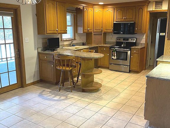 Beautiful brick ranch home located in a tranquil setting with over 4 acres! As you enter, the living room boasts a bay window offering loads of natural light and ample space where friends and family can gather. It flows into the large eat-in kitchen. The chef in the family will appreciate the granite countertops and stainless steel appliances. Ample counter space is ideal for food preparation. Down the hallway you will find 3 good size bedrooms and a full bath with a tub/shower. The mud room will be a great place to drop your shoes or a back pack and the 2nd full bath has a walk-in shower. The lower level has a huge recreation room with a wood burning fireplace- a perfect space to watch the big game, exercise or host parties! In addition, there is a large laundry room and a storage room where holiday decor and seasonal items can be stored. The attached two car garage will save you from scraping ice and snow from your vehicle. Enjoy outdoor living? The covered back porch and will be the place for you. Wait until you see the heated pole barn! It could be a wood shop, a place to store an RV, tractors or multiple vehicles, a sports facility for basketball or baseball or a studio space for art or music! In addition, there is a detached garage where 2 cars can be parked. The yard will delight gardeners and outdoor enthusiasts. The home is freshly painted and has new carpeting throughout. Don't miss it!