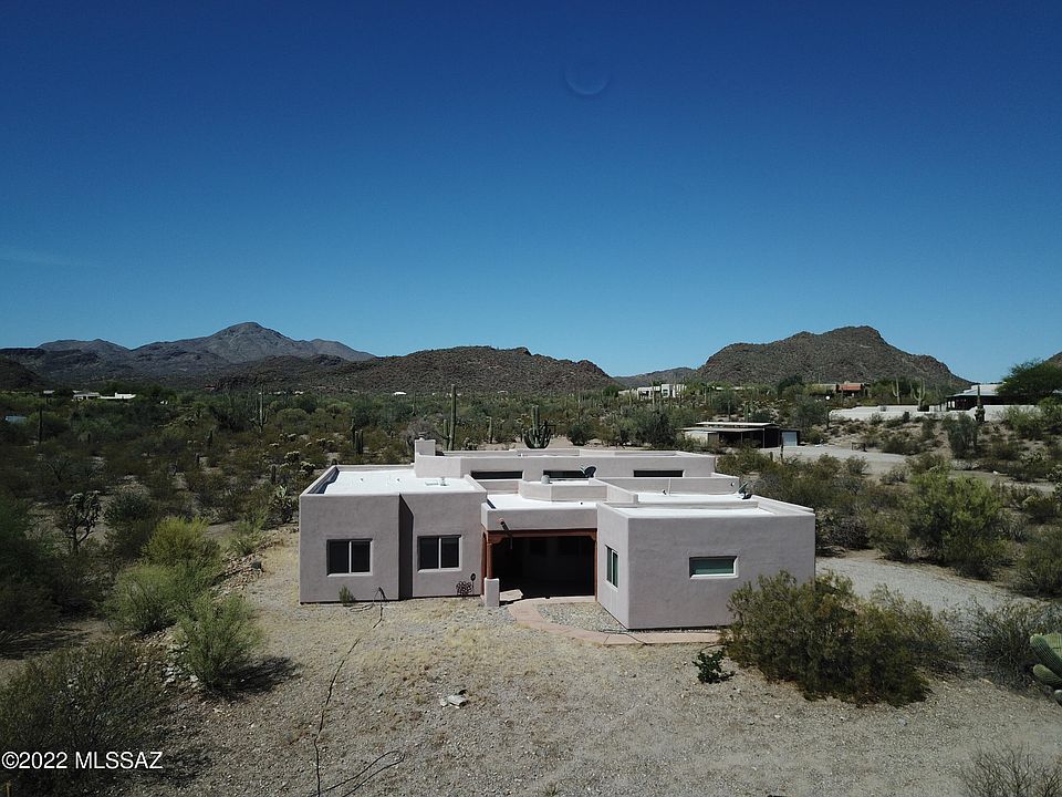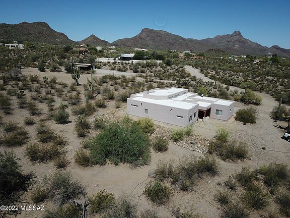 Super Private custom home surrounded by beautiful natural desert on 3.33 acres. Bright and open floor plan with vaulted ceilings and tons of natural light with clear story windows and skylights throughout. This is a 3-4 bedroom* home with a den, half bath, and two full bathrooms in the main house. There is also a separate guest studio with a bathroom and private entrance. The bonus studio would be perfect as either a mother-in-law quarter, a home office, or crafts room. Deep front porch along with two separate patios in the back offer lots of space for entertainment. The home has amazing views of the mountains from the back and a bit of a city view from the front. Located close to I-10 within minuets of shopping and dining. Horses allowed, close to trails in Saguaro National Park.