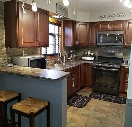 Updates include newer kitchen cabinets, backsplash, counters, floors, appliances. New vinyl siding on rear of house. Gleaming hardwood floors. Furnace is 2 years old and water heater is 3 years old. Large backyard includes pool and 2 decks. Unwind in the sauna which is located in the lower level. Keyless entry system.