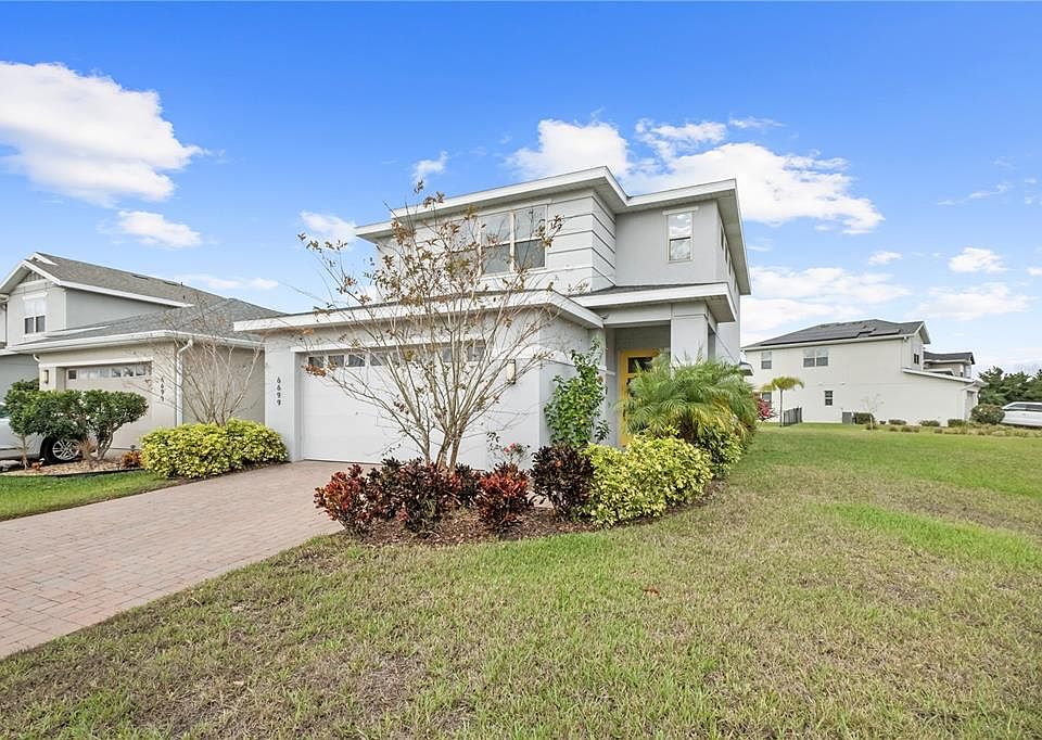Better Than New! Remodeled 4 Bedroom 3 Bathroom Home situated on an Extra-large (0.21-acre) corner lot, with plush Alexander palms, offering plenty of space for building a pool, gardening, kicking around the ball, or setting up a swing set. Harmony West is a new and well-maintained community with Low HOA, but Lots of Great Amenities such as Large Pool, Splash Pad, Fitness Center, Yoga Room, Clubhouse, Playground, Picnic Areas, and Dog Park. Step through a modern Yellow Front Door (which some say symbolizes warmth and happiness) and you will be greeted with an abundance of natural light, 10 foot ceilings and extra wide hallways. On the main floor you have a large Living Room and Dining room, as well as a Chef’s kitchen featuring Quartz Countertops, 42 Inch Cabinets, Modern Lights, New Electric Stove, and Samsung Bespoke fridge. One of the Bedrooms and a Full Bathroom are also on the first floor. The main area, all bathrooms, and laundry room have been upgraded with Luxury New Tile (2024). From the dining room, you can step outside into your Fully Screened-in patio to enjoy the view of the Sunrise over a pond that’s just across the street. On the second floor is your Primary Bedroom with En-Suite Bathroom and Large Walk-in Closet; and Two more bedrooms with a Full Bathroom. Upstairs Laundry Room comes with a Washer and Dryer, and LOTS of cabinets and counter space, as well as a Sink and Built-in Closet. Home has been upgraded with Double-pane Thermal Windows and Zoned HVAC system with two HoneyWell ProSeries thermostats, and a UV Light System (2024) to improve indoor air quality. 2 Car Garage comes with LiftMaster Garage Door Opener which you can control wirelessly from your Phone (MyQ App). If you want to have some fun in the area, check out Lakeshore Park with outdoor sports facilities (3 miles) or a Reptile World Serpentarium (3.6 miles). Like golfing? Harmony Golf Preserves is also 3 miles away. And a few miles away is a Hidden Gem – Alligator Lake – with three separate ramps to launch your boat, or taking Canoes/Kayaks out. Whether you're amateur or professional angler, there is plenty of opportunity to reel in some cool fish (Bass, Bluegill, Redear Sunfish, etc).