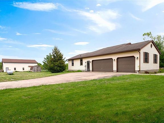 WOW! Welcome to this spacious 3 car side load w/3bredrooms 2 full bath Ranch Home you have been looking for! Its worth the wait! Over 10 beautiful acres!! Open floor plan! Freshly painted thru-out! Large eat in kitchen to say the least! Formal dining room for all your special occasions! Living room is filled with natural light thanks to the large French door that leads to aa secluded large deck, overlooking acres and acres and then some! Master bedroom is expansive with a walk-in closet and master bath! Nice size two additional bedrooms on the opposite side of the house from the master bedroom. The 3rd BR has a sliding glass door, that could be used as an office as well. 1st Floor Laundry Room (Propane Dryer Connection) Large open basement waiting for you to finish! This home also features a (48x56) 2688 Sq Ft Pole Barn w/Electric/Cement Floor/Water! 8x8 Chicken Coop! 10x16 Storage Shed! Newer Furnace; Air Conditioner and Hot Water Tank! Beautiful Parquet Flooring in Kitchen and Foyer. You can Make This Your Own HOME, SWEET, HOME!