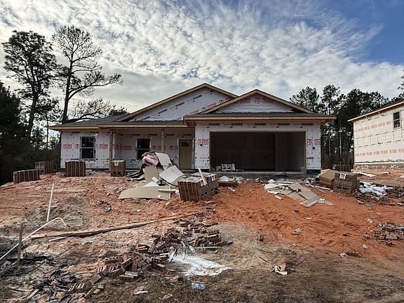 No Wetlands & Located in an X flood zone, this exceptional new home features many upgrades throughout. Clad with the timeless durability of brick, cement fiber board accents, and an architectural shingled roof. Interior offers luxury vinyl plank in the common areas, visually pleasing neutral tile in the baths and laundry room, and carpet in the bedrooms. Custom paint color is accented with a wide baseboard, beautiful crown molding, and spectacular tray ceiling accents in the master bedroom, dining and entry area. Transom windows over the hall entryways provide a high-end custom touch. Stainless steel appliances including refrigerator, stunning shaker style cabinets, and granite throughout finish the home exquisitely.