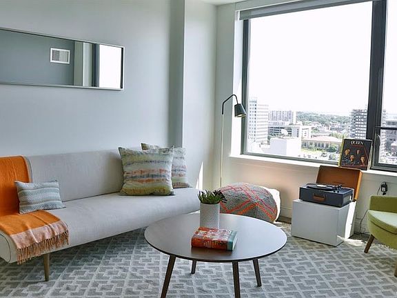 Stamford's premier new luxury bldg. located in the heart of the downtown. -Gourmet kit w/ granite countertops, high end stainless steel appliances-stove, dishwasher, refrigerator, microwave, that opens into sunfilled living rm w/ lg windows and fabulous city views, lg bedroom with oversized closets, beautiful bathroom, gleaming hardwood floors, w/d, includes hot/cold water, sewer, state of the art low cost heating system, roof top deck w grills, firepit, professional gym, yoga room, clubroom, state of the art work space stations, concierge for package reception & dry cleaning, 24 hour emergency maintenance, shuttle/walk to train, shops, nightlife, pet ok, must see unit @ a great price! low security deposit