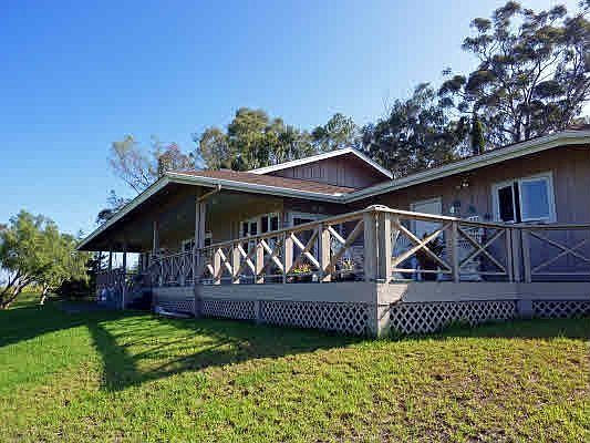 Single level ranch house, attached garage, laundry room and connected cottage located on one of the best view lots in Waiki'i Ranch. Wide deck runs along the entire back side of the house and affords spectacular and panoramic views of the coastline and mountains. Whole exterior of house has been freshly painted in traditional ranch green. Many new updates in interior as well. Main house is over 2000sf with a large master bedroom and walk in shower, two more bedrooms and bathroom. Dining room features opens to living room and fireplace. Cottage is 800 sf with 2 bedrooms and 1 bath, private and perfect for extended family members and guests. Wall heaters throughout the house.Plenty of area to build a barn, fenced for horses, and a nice yard for pets and children. Waiki'i Ranch is a gated community of over 2000 acres with a clubhouse, tennis court, polo field, arena and mile of riding.