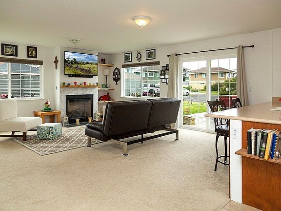 Luala'i Phase 3 home on a unique lot with common areas on two sides, giving a lot more space between you and the neighbors. Another feature of this home is the views available from the upstairs. Views include Parker Ranch land, Mauna Kea and Mauna Loa from the master; Buster Brown from the guest bedrooms; evening sunsets from the master and guest bedroom #1. The back of the house faces a community park on Neleau Pl. which gives you great evening sunsets. The neighborhood is right in Waimea town; minutes from shopping, schools, the public library, multiple parks (Anuenue, Waimea Nature Park, new community gym), hospital and Kahilu Theatre. The downstairs of this 2-story home features the kitchen, living room, dining area, half bath and storage under the stairs. The upstairs includes the master bedroom with en-suite bath, the 2 guest bedrooms and a full bathroom. The master bath has been upgraded with additional shelves and separate mirrors over each sink. The master also includes a walk-in closet. The guest bedrooms are both approximately 11' X 13', larger than most Luala'i model plans. Additional upgrades include an updated mantle and fireplace surround; Corian countertops in the kitchen and baths; cherry cabinets; additional shelves in the kitchen; USB charging outlets in kitchen, living room and guest bedroom #1; 80 gal. solar water heater; shelving and attic space within the enclosed 2-car garage. There is a 16' x 16' wooden deck off the back of the house for outdoor living space. Refrigerator, electric stove, dishwasher, washer, dryer are all included with the sale of the home. This neighborhood is one of the quietest in the entire town of Waimea while being extremely child-friendly. The neighbors are quiet, friendly and helpful.