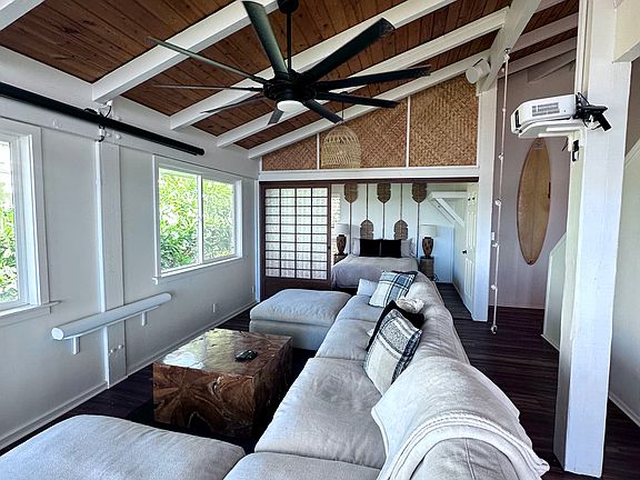 Welcome to your oceanfront retreat located on the most coveted culdesac in Waialua. The crystal clear blue waves will rock you to sleep in your 180 degree ocean view master bedroom with walkout lanai. This newly renovated apartment comes fully furnished with a full kitchen, bedding, furniture, smart TV's, projector, and ocean view hot tub! Located on one of the quietest beaches in Waialua. Perfect sandy spot for swimming right next to the house. The beach is protected by a large reef and deep channel making it very kid friendly during the enormous winter swells. Paddle out to Hammerheads surf break on the outer reef right from your backyard. Just a short 5 minute drive to the Haleiwa town shops and restaurants. Skip the North Shore traffic being on the south side of Haleiwa! The apartment is attached to the main house and the owners live on site. We live here with our 3 boys and the most friendly dog you will ever meet. We would love to show you around town or go surfing with you right out back! All utilities are included along with internet. Dogs and cats are allowed with additional pet fees. No short term, 30 day minimum, 1 year lease preferred.