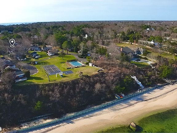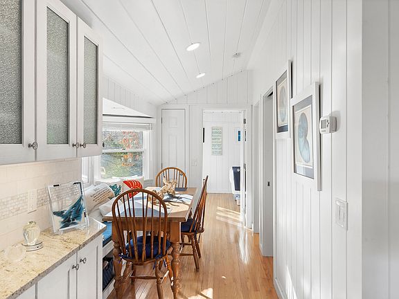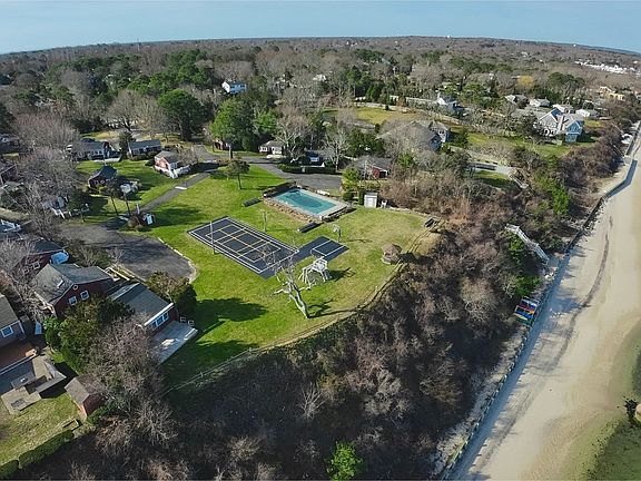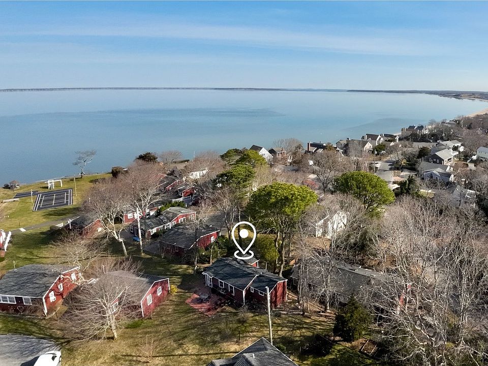 Indulge in the quintessential Hampton lifestyle at this exquisite, secluded waterfront seasonal cottage community overlooking the breathtaking Great Peconic Bay. Escape the hustle and bustle of urban living and immerse yourself in a tranquil summer haven while you work remotely from home. Your children can safely frolic in the enclosed landscaped grounds and enjoy the playground. Experience the epitome of a Hampton's summer as you unwind on your private beach, glide along the bay in your tandem kayak, take a refreshing dip in the sparkling pool, or unwind in the gazebo while witnessing awe-inspiring sunsets. For the sports enthusiasts, there are pickleball and tennis courts, as well as a basketball hoop perched atop the bluff. This charming cottage has been meticulously renovated inside and out, boasting an open-concept design, elegant shiplap walls, new windows, central air/heat, a modern stainless steel kitchen adorned with granite countertops and a marble/shell backsplash, oak flooring throughout, a cozy dining area, two inviting bedrooms, and a luxurious marble/granite bathroom. Step outside onto the expansive brick patio, complete with access to ample storage behind the foundation walls. Pets are warmly welcomed, and private and guest parking are readily available. Laundry facilities are conveniently located on the premises. With Board approval, the cottage can be expanded by up to 25 percent. Situated close to a myriad of restaurants, art galleries, and boutique shops, this is an opportunity not to be missed. Don't let this chance slip away-make this slice of the Hamptons yours today!