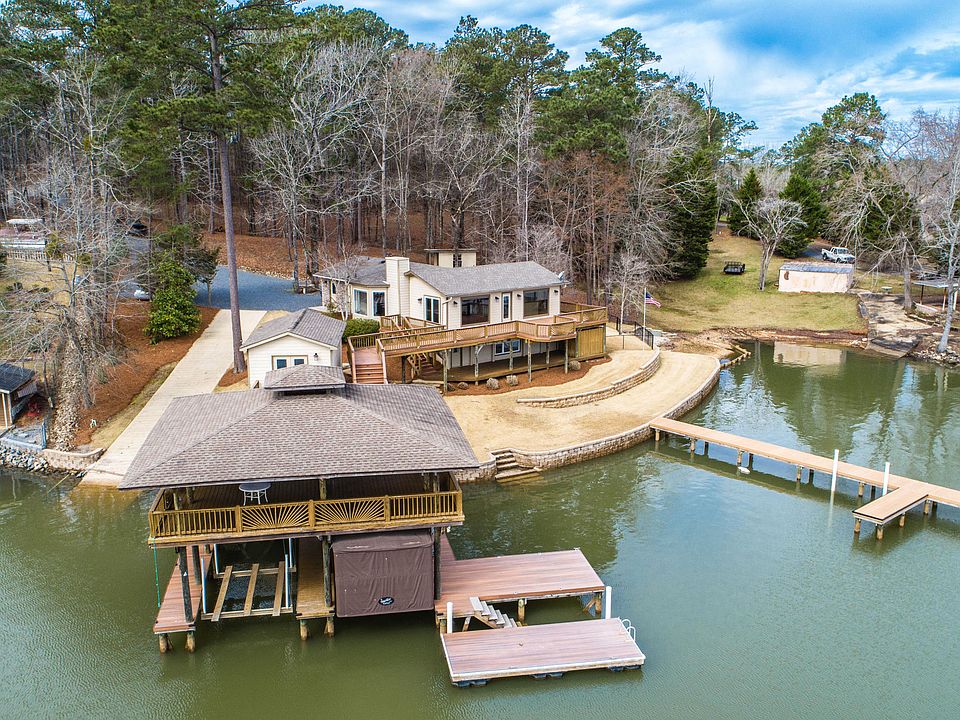 COMPLETELY UPDATED- There is nothing that has not been touched in this lovely cabin but you can still feel the quaintness of a cabin. What more could you ask for? Features a large laundry/prep room w/ cabinetry & built-ins off the kitchen, which has fabulous quartzite countertops with lovely Chicago brick backsplash on walls, and a Blanco granite double composite double sink. BEAUTIFUL doors throughout w/ a wood barn door in the master bath. Partial basement could be used as 3rd BR/bunk-room OR Family Room w/ a FULL BATH! Want more? How about a FANTASTICAL boat house/outdoor room over boat slips w/ a STUNNING VIEW of the lake? Also has a separate pier, floating dock, double boat slip with a lift in each, outdoor shower w/ rain head & additional storage on roadside. MUST SEE TO BELIEVE!!!!!