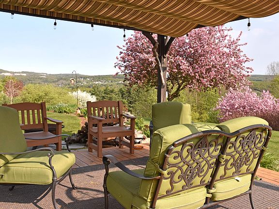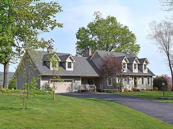Vacation at home, everyday! Impeccably-maintained 4-BR, 3-bath Cape on 1.9+/- acres. Fully-equipped Kitchen with upgraded stainless steel appliances include Bertazoni (Italian) gas range/oven, granite counters, and a breakfast bar. Crown molding, and a mix of birch, cherry, white oak and tile flooring really add charisma. Central atrium with vaulted ceiling. First floor bedroom has a direct entry to full bath. First floor laundry room, too. Second floor has 10' ceilings with three bedrooms. Primary bedroom has private bath with oversized shower stall, and walk-in closet. Full shed dormer of windows across the back, takes full advantage of the distant mountain views and sunny exposure. Media room with surround sound and flat-screened TV included. Mudroom entry. Direct entry 2-car garage. Den with gas fireplace and French doors leading out to the deck (12'x36'+18'x6') with retractable awning, 5-person hot tub, patio and beyond! 20'x40' in-ground pool with 10-yr old vinyl liner (5'-9'depth), new safety cover, and full perimeter fence. Pergola with power. Garden Time Carriage House storage shed. Kohler stand by generator. Several perennial flower beds, stone walls, and crab apple trees. Covered front porch. Dead-end street location is super convenient to I-89 access, hospital, shopping and services. Prefer end of July closing, but let's talk. Outstanding!