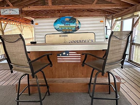 You will not want to miss this treat! Large porch with bar and outdoor living, privacy shades, easy parking, 2 bedrooms and a short golf cart ride to the pool or boat landing....Can not get much better than this. This home features ample opportunities. MOVE in ready, just need to pack your bags!