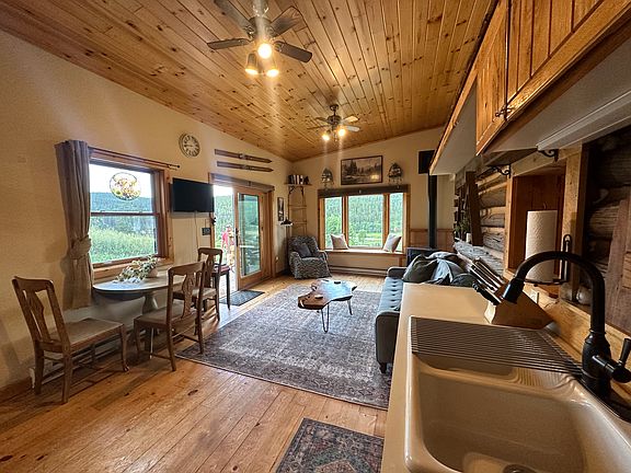 - Exterior features: Bicycle storage, Bunkhouse, County maintained road, Creek sounds, Electricity not included in rent, Frequent wildlife, Gas not included in rent, Heating system: Baseboard, Historic, Huge jet tub, Internet not included in rent, Lawn, Nearby trails, View Type: Valley views, Walking distance to food and drink establishments