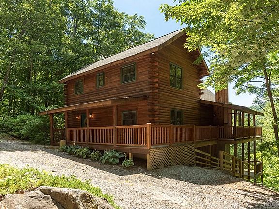 The three-bedroom, two-and-a-half-bath quintessential cabin in the woods offers a year-round, short and long-range views from its upper and lower wrap-around decks, as well as its attached, screened side porch. The property is situated on a doublelottotaling almost 2 acres, offering a rustic, wooded feel within an unostentatious gated community. With cathedral ceilings and a stone fireplace, the large main floor living area is filled with natural light and has large rear wall windows. There is a master bedroom/full bath and a half bathon the main level, as well as two additional bedrooms and a full bath upstairs. A spacious lower level provides endless options for use. Located within 25 minutes of Cashiers, 10 minutes of Lake Glenville amenities, and a short drive to a scenic, box canyon with a hike to two waterfalls.