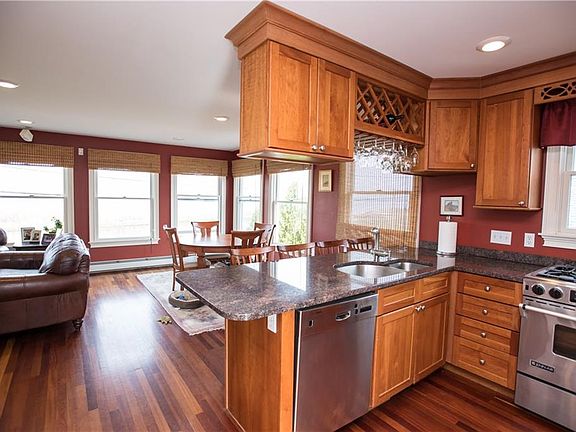 Majestic water views from this contemporary home situated facing the mount hope bridge. Steps to your mooring and beach access walkway. This well maintained home has water views and golf course views from most of the home. Its a great opportunity to own your own piece of paradise directly across from the water. Roof top widows walk, with panoramic views of water and golf course. Home boasts hard wood floors in main living areas. Kitchen with stainless appliances and granite counters. 2nd floor laundry adds convenience to this great home. 1 car garage and large driveway. Fenced in yard with outdoor shower and screen house. If needed room to expand additional land and or 2nd home available as an add on to the listing. Extra property is currently part of 58 Berkley Ave. Part of the parcel could be cut over or 58 Berkley Av sold with this listing for $1,025,000. Please contact listing agent for details.