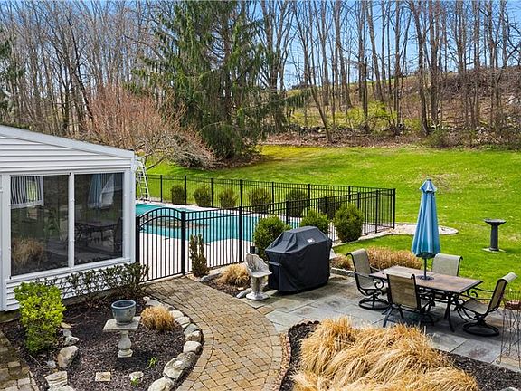 This 4 bedroom, 4 bath Colonial Home with circular driveway offers a grand entrance with hardwood floors. As you enter the home, a library/office with French doors leads you to a family room with brick fireplace. This large family room is perfect for entertaining! The eat-in kitchen has a very large island with cooktop for easy family meal preparation. The kitchen also has all new Stainless Steel appliances. The kitchen leads you out to a three-season room overlooking the patio and heated pool. You can imagine the great summers you can have with family and friends here. There is an additional back stairway taking you a story up leading to another very large family / media room and a second office for you to work from home. (this area of the home can also be used for extended family or au pair suite). The back stairway or the main entrance staircase lead you to the four generously sized bedrooms. One of the bedrooms even has its own bath. The master bedroom has a dressing area and 2 walk in closets plus the full master bath. Includes a full unfinished basement as well as a 3 car garage. This home is set back from the road on over 2+acres of professionally manicured land. This property is perfect in so many ways, don t miss out on this opportunity to live in this stately home. Close to schools, shopping and highways, don't miss this opportunity.