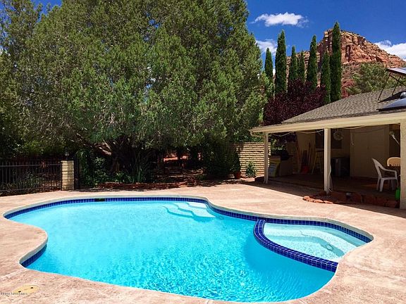 This well-kept home and property offers peace and serenity throughout. The grounds are gorgeous on a large .44 acre lot, complete with in-ground SALT WATER POOL, Koi pond, fenced garden area and natural mature landscaping. Inside features all stainless steel appliances in the kitchen, custom tile flooring and quality laminate. There is a formal living room with fireplace and a large separate family room (currently being used as a music room). Two bedrooms and two baths (showers only, no tub) plus a huge AZ room or pool-room. There is also a covered patio, detached double garage and two carports. A nice storage shed offers extra storage, or can be used as a garden shed. Vacant/keysafe.