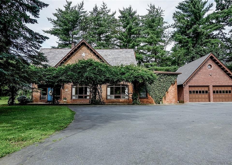 Quintessential Brick Carriage House with perfect slate roof, on the original Jova Estate in desireable & classic Balmville section of Town. Built around 1910, this compound on the hill was subdivided by the driveway, placing this classic carriage house on 1.8 acres, the original restored brick mansion remains next door. This home great flooring, tile hall to formal dining room, recent hardwood floor,&generous living room family room combination w/brick fireplace. The rounded carriage door archways in brick, both interior,& customized large windows, accentuate the earthy class of the origins of this solid structure. The perfect slate roof has been professionally maintained & serviced recently,w/some upgrades to the chimneys. Big brick two car garage w/pull down stairs for vast extra storage was added in 1989, featuring a matching round window just like several in the main structure. Recent oil tank, hot water heater too.