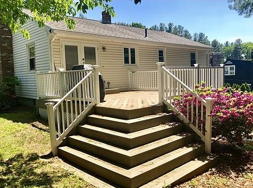 Great neighborhood location for this vinyl sided raised ranch situated on a 3/4 acre lot! This home has so much to offer and features an updated kitchen w/quartz counters, gleaming hardwood flooring, dining room w/exterior french doors that lead out to a good size Trex deck, replacement windows, 1 car garage, shed and a partially finished basement for an additional bedroom making 4! Kitchen appliances remain for buyers enjoyment.