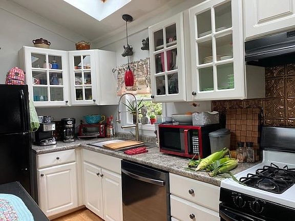 A Home Like No Other. You'll walk into an impressive renovated kitchen graced by 3 skylights for natural light. White sparkling cabinets some with glass doors, new s/s sink with modern faucet. Additional features center island, ceiling fan with lights, all appliances part of the sale & plumbing has been up-dated. Take note to shelves around ceiling. Continue down the hall is full bath completely remolded with crisp ‘n clean white bead board. Washer/dryer stackable will stay. Spacious rear bedroom can accommodate a queen size bed. Second bedroom is located in front. 16x10 additional room featuring new sliders leading to private large back yard & the woods . Large 12x12 deck complements the back of the house. Some items to remember are: central air, plumbing & electrical up-dated, hot water fairly new, car port leading to kitchen, 2 sheds extra storage. Showing will start 9-22 by appointment. All offers to be in end of the business day Friday23rd