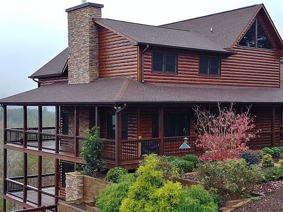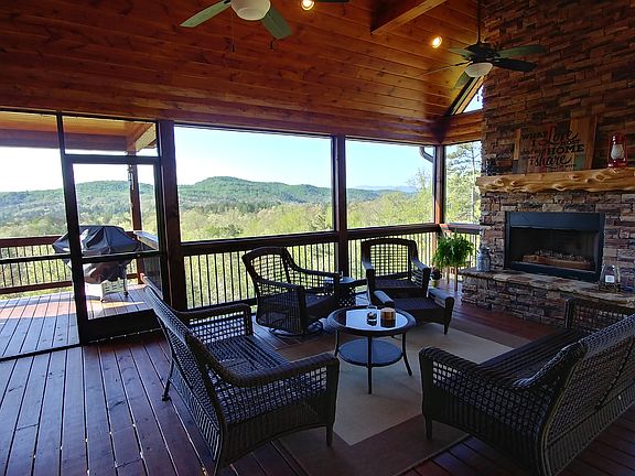 Location, Location, Location! This beautiful custom home is located in Mineral Bluff's premier gated community, the Highlands, just 15 minutes from downtown Blue Ridge. It sits at the end of a quiet cul-de-sac on over 7.5 acres (5 lots), providing a 360-degree vista of forested valleys and long-range mountains. Enjoy nature while also having the conveniences of high-speed fiber-optic internet, underground utilities, fire hydrants and wide paved roads. The home's exterior features wrap-around decks on two levels, a large screened party deck with fireplace, beautifully terraced landscaping and a two-car detached garage. The home's interior includes high-grade finishes and custom furniture, bedrooms with on-suit baths on each of the three levels, a large loft and a wet bar in the den. The home has been used part-time since built and has never been rented.