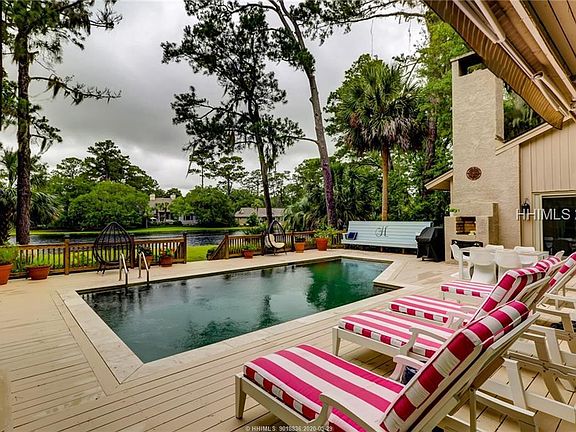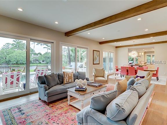 Beautifully redone - in unbelievable condition. Great house with beautiful pool, lagoon view and in one of the best locations in Sea Pines. 4 BR's, 5 BA's and a 2 car side-entry garage. Updates include all new floors, new kitchen including counter top & backsplash, new stairs, painted pool deck, redone bathrooms, all new furniture, new carpet, new roof, spray foam insulation, water softener, etc. Kitchen opens to a family room with new beams. The entire house has been painted. Two fireplaces, Presently on the short term rental market. Shows extremely well.