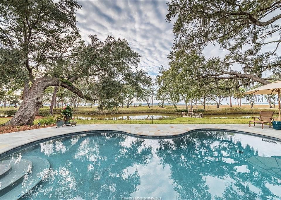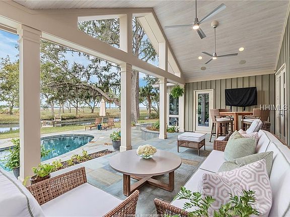 Enjoy sunsets over Calibogue Sound from this beautifully designed 4bedroom 4.5bath home featuring an open comfortable floor plan perfect for both entertaining and family living. Situated on an over half-acre lot, this property offers views out to the tidal lagoon, marsh, and sound to include your personal landing with pull bridge to your own private island. This home features 4910 sq ft all on one level with beautiful modern open Kitchen, multiple dining and lounging areas, Master Suite, and park-like grounds including pool and lush landscaping. Savor a lifestyle of luxury combined with comfort. A Forever Home!