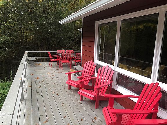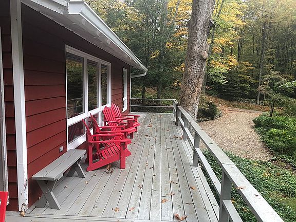 Hard to find smaller home on 5+ wooded acres. Perfect for a couple or small family as a weekend or full time residence. All surfaces, finishes, kitchen updated in 2018 with a nod toward the home's mid-century heritage. Oil hot water baseboard heat and central AC keep the home comfortable year round. House also features a drive under garage in the basement and 500 sq ft deck.