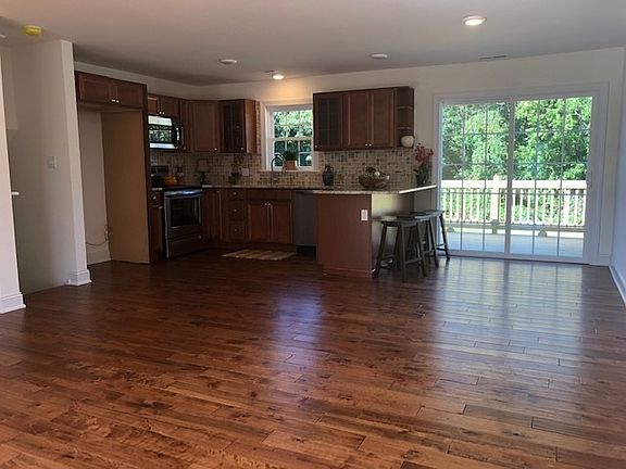 Beautifully remodeled split level home featuring a numerous amount of upgraded amenities. Enter into an open great room with 3/4 inch thick hard wood flooring. The adjoining kitchen and dining area offers maple cabinetry, a granite counter top with ceramic tile back splash and stainless steel appliances. A set of sliding glass doors lead out to a rear deck. There is a bedroom downstairs that can easily be used as a family room/den/office/library or hobby space. The top floor of the home offers three spacious bedrooms, all with closets and a very large full bath with a ceramic tiled floor, subway tiled tub surround, new toilet, vanity and sink. The downstairs full bath has a beautiful new vanity, toilet, ceramic tiled floor, fully tiled shower stall and separate laundry closet. The attached garage offers parking for a car and additional storage. There is recessed lighting,a coat closet and a beautiful "driftwood" accent wall in the great room/dining area. At the rear of the home there is a storage shed and a wooded perimeter for privacy. Enjoy a front porch or rear deck.This home is equipped with a new roof, windows, heating, air conditioning, water heater, exterior and interior doors are and siding.