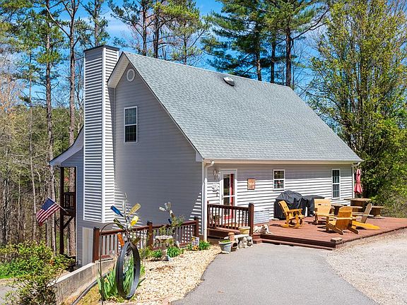 Welcome to your mountain home! This charming 2-story cape cod-style home offers 1900 sq.ft of living space, blending comfort and style. The main level boasts an open floor plan providing a cozy fireplace in the living area, flooded with natural light from large windows, alongside a well-designed kitchen with granite countertops and ample storage. An added feature to the kitchen is a matching island with a 2-person eat-in bar allowing helpers to join in the kitchen fun! A full dining room too! Conveniently located next to the kitchen is the laundry room with built-in shelving and washer and dryer. Also on main, is a spacious master suite with ensuite and oversized walk-in closet. Upstairs, two spacious bedrooms share a roomy full bath and quaint lounging space in the loft. Both bedrooms are equipped with large closets and more storage space :) The basement has a heated bonus space of 500 sqft perfect for a home office/gym. On 1.87 acres of usable land, enjoy your private outdoor living space, perfect for entertaining or relaxing. Over 668 sqft of decking and a unique Roman firepit that awaits your first family gathering. This home has plenty of paved parking both around the home and more spaces up top on the additional acreage. It's an ideal space for entertaining, playing cornhole, or grilling-out with friends and family while taking in the crisp mountain air. With its inviting features & convenient location only 3 mi. from Downtown Murphy, this home is a true gem!