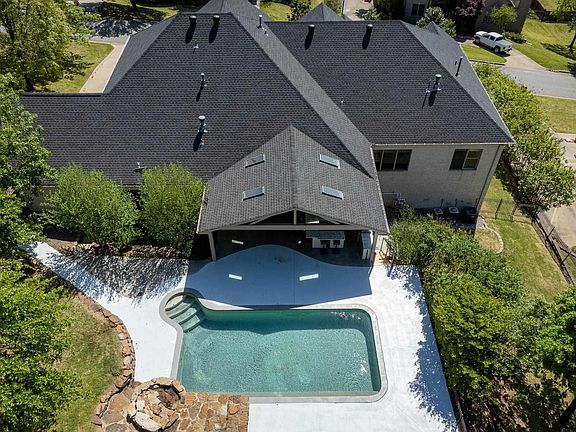 Chenal Home w/ SWIMMING POOL and FABULOUS VIEW! Enjoy a spactacular sunset vista from this gorgeous outdoor oasis. Beautifully built LaMarche home has it all. Main level offers rich and handsome hardwoods, high ceilings, 3 bedrooms with ENSUITE BATHS, open floor plan, lrge kitchen/ family room combo overlooking pool, formal dining, 2nd living space, laundry room, office, and FULL BATH for pool guests w/ outdoor access. Upstairs boasts huge entertainment/game room w/ 2 bedrooms, and full bath. Make this family friendly home your own and enjoy all the amenities of Chenal Valley for a great price. 2022 roof, fresh paint, large closets and tons of extra storage. Agents - SEE REMARKS
