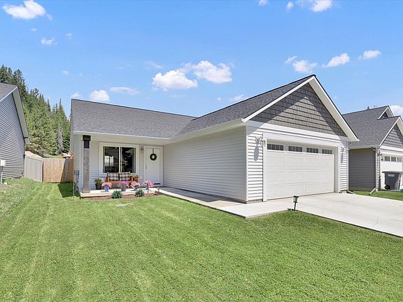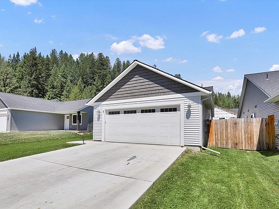 Embrace the charm of North Idaho in this beautifully maintained 2-bedroom, 2-bath home offering 1,080 sq ft of comfortable, single-level living. Set in a quiet and low-traffic neighborhood, this home features a bright, open-concept great room and kitchen—perfect for both everyday living and entertaining. The spacious primary suite offers a walk-in closet and a private bath with a low-threshold shower, enhancing accessibility and comfort. A separate laundry room, conveniently located just off the main living area, leads directly to the attached two-car garage, which includes built-in shelving for tools, gear, and additional storage. Located just 30 minutes from the beautiful cities of Sandpoint and Priest Lake, this home offers the perfect blend of peace, practicality, and access to North Idaho’s natural beauty.