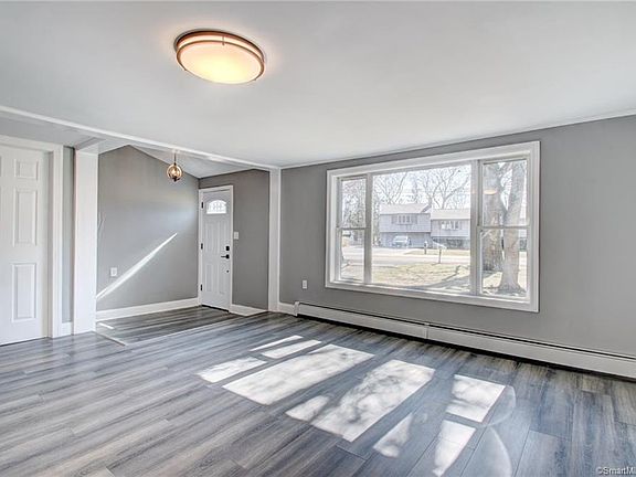 Opportunity knocks at this turn key ready home conveniently located near everything. Situated on more than ½ level acres, with a private 10 x 16 deck off the kitchen, the outdoor living space is perfect for children, entertaining family & friends, and even a pool! Featuring new roof, new siding, new gutters, and huge 4 car detached garage with brand new door, plus additional 10 x 20 workshop area in the rear. Upon entering, you will notice the sunken foyer with vaulted ceiling, huge open concept living, dining and kitchen area. Bright recessed lighting leads you into the impeccably refinished kitchen & highlights the seamless Quartzite countertop with the very desirable waterfall edge on peninsula, shaker white cabinets, brand new Stainless Steel appliances, & contemporary backsplash. Beautiful wine bar with matching Quartzite countertop, backsplash, and wine chiller. Main level master bedroom with his & hers closets as well as direct access to the main bathroom featuring Marble tile shower with custom Carrara Marble design. Close proximity to shopping, restaurants, entertainment and easy access to I-91 and Route 15. Two miles to Quinnipiac as well as eight parks within a 4 mile radius. Gloves available upon entry, schedule your showing today!