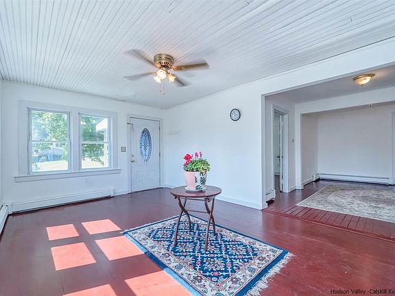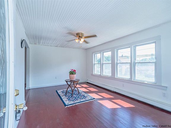 This charming country move in ready home located in Uptown Kingston is set back from the road and on a hill giving you a little extra privacy. The large semi private rear yard has a gardening shed, bluestone walkway, and is spacious enough for a pool and lots of outdoor fun. Inside you will find one level living with recently finished hardwood floors throughout, ceramic tile in the nice sized eat in kitchen, a large living room with plenty of windows for natural sunlight and a large dining area for gatherings. The main bedroom has a large walk in closet, and there is an additional room perfect for a den/office or 3rd bedroom. The laundry room is off of the kitchen with convenient access to the back yard. The large basement can be used for additional storage and has windows providing good natural light. The one car garage and the long driveway allows for plenty of off street parking. Conveniently located to Rosendale, New Paltz, hiking and the Rail Trail. Walking distance to the elementary school, the Stockade District, restaurants, and shops.