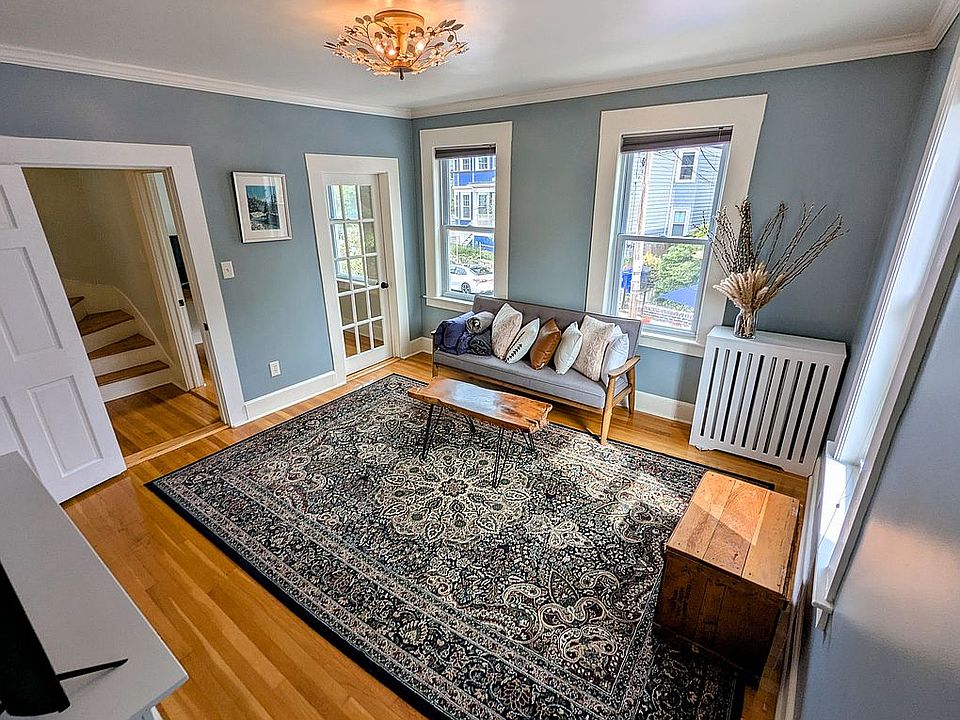 Charming two-bedroom 1,304 sq ft condo for sale in Jamaica Plain, offering a unique blend of character and modern convenience. This spacious unit encompasses the second floor and a beautifully converted attic, creating a delightful and expansive living space. The main level features a generous living room and a dedicated dining room, perfect for entertaining. The kitchen is a true highlight, boasting a functional island, a sweet breakfast nook, and a clever laundry closet with a built-in washer and dryer. Ascend to the converted attic to find two bedrooms filled with natural light from large skylights. Throughout the home, you'll discover hardwood flooring, and charming built-in bookshelves in unexpected places, including a bedroom, the dining room, and at the top of the stairs, adding both style and storage. Step outside to your own private deck, a tranquil retreat with a beautiful cherry tree that blooms right beside the railing, offering a picturesque backdrop for morning coffee or evening relaxation. Additional amenities include a valuable off-street parking spot and abundant basement storage. Located in a prime Jamaica Plain location, this condo is a commuter's dream, just a short walk to the Stony Brook T station on the Orange Line. Enjoy easy access to the nearby park and all the vibrant shops and restaurants of the neighborhood. This is a truly special home that combines comfort, charm, and an unbeatable location.