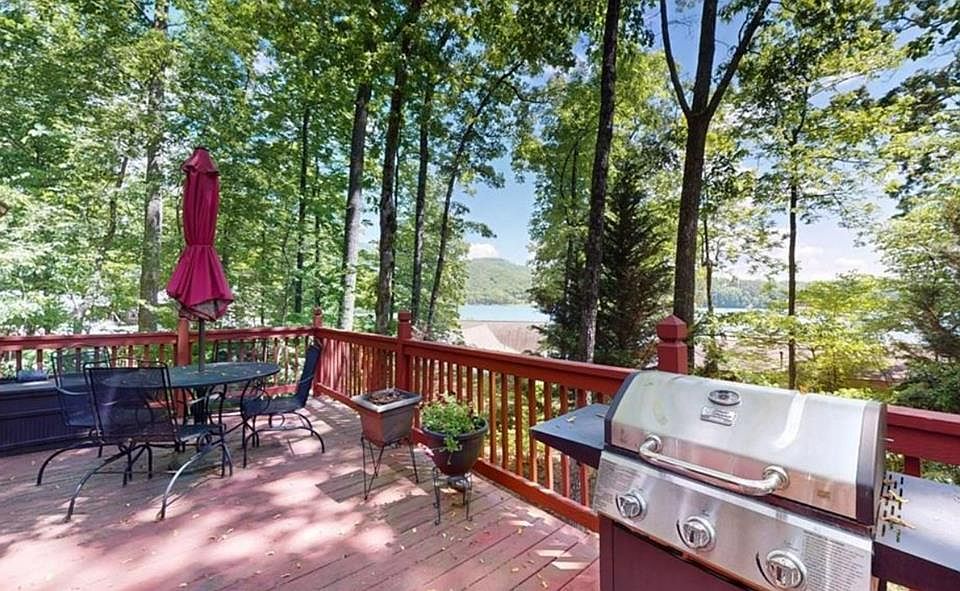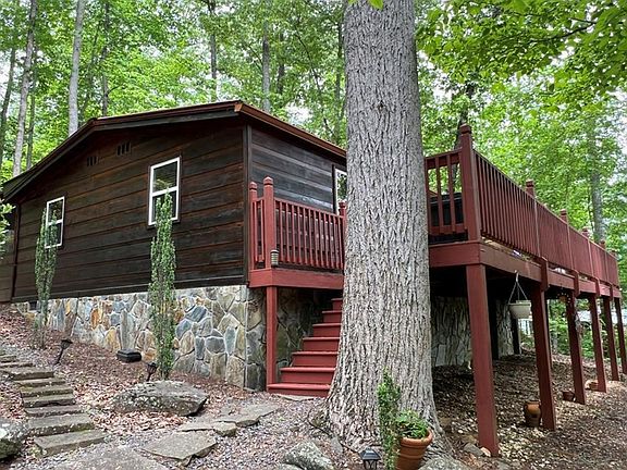 An affordable turnkey weekend get-away, rental investment or full time home just steps away from beautiful Lake Chatuge WITH DEEDED LAKE ACCESS to launch your kayaks and play on the lakeshore. The home comes fully furnished and most of the decor, cookware, dishes, etc. convey. This home offers lake and long-range mountain views from its large front deck. With some clearing, those views can be even more spectacular. The setting is one of the most peaceful you can imagine. Inside you'll find an open concept kitchen, living, and dining space, two bedrooms and two full bathrooms. With minor renovation, a primary bedroom with ensuite could be achieved. Access the home through the 2-car parking pad with No steps through the screened porch, or enter through the additional parking (semi-circular drive) via the front deck. A large, gently sloped lot can be fenced for children and furry family members. There is also a spacious shed for storing all of your lake toys. This is truly a rare opportunity to have a lake and mountain view, lake access home at this price point. Steps to pristine Lake Chatuge, and close to the Appalachian Trail . . . this area has so much to offer: hiking, boating, world-class fishing, golfing, pickleball, shopping, and dining. This home is less than 4 miles from the Hiawassee town center for all of your shopping and dining needs, and close to local marinas for boating needs (including Freedom Boat Club and many other boat rental options). Hiawassee is home to the Georgia Mountain Fairgrounds, with wonderful festivals and a great music venue.