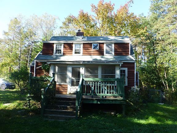 Set way back from the road you'll find this Charming and private 1935 Cape. 1.8 acres, with Muni water, sewer, natural gas. A rare find! Solid home with lots of windows and light could be made special again. Wonderful living/dining with oak floors, built-ins and woodstove open to large back screened porch and private deck. First floor bedroom and half bath. Up are one large bedroom and 3 smaller rooms.