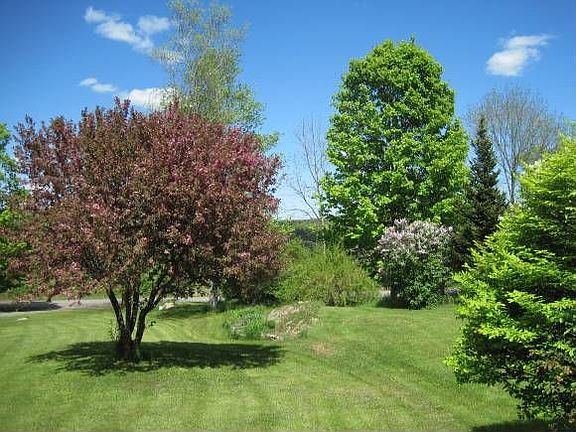 Pastoral setting for this beautifully constructed & well maintained Ranch. Fine craftsmanship in every detail, with beaded woodwork, built-ins & raised panel Christian doors. Open concept LR/DR combination, w/wide pine floor. Adjacent to this lovely room, is a passive solar, cathedral ceiling, Sunroom. Well designed KIT w/cherry raised panel cabinets, excellent work area & a pantry. MBDR Suite w/3/4 bath. Mudroom/laundry combo. Full basement w/separate office or exercise room & large workshop area. Sitting gracefully to the right of the home, is a beautiful pre-1800 barn, reconstructed into a seasonal STUDIO 20 x 37 w/gunstock corners & cabinets built from the wood of the original barn. The home is on a corner lot and is just lovely w/flowering crab apple trees, large asparagus beds, perennial beds & established garden area. A delightful property.