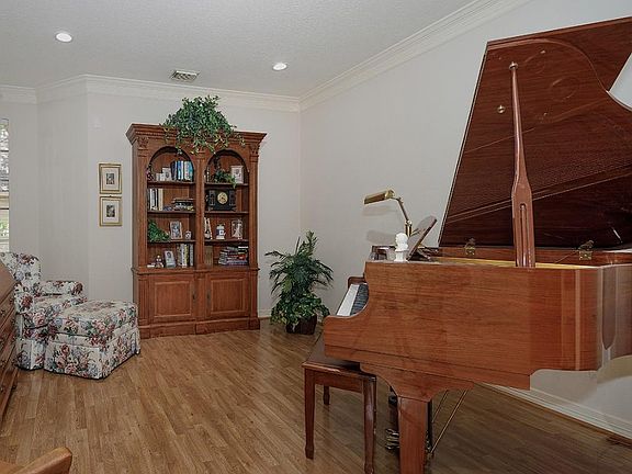 Beautiful LifeForms home with original owners that backs to a greenbelt in Cochran's Crossing! Gated driveway, fresh interior paint, new carpet and porcelain tile floors, two new a/c condensers, Plantation shutters, and incredible natural light throughout the many transom windows. The study with built-ins can be closed off for privacy with French doors, and has a window into the formal living room; formal dining with crown moulding and chair rail; the two story den with gas log fireplace opens to the island kitchen and breakfast rooms; owner's retreat down; three bedrooms, game room and two full baths up; fenced yard has a sparkling pool with waterfall surrounded by mature shade trees and no rear neighbors! Close to Cattail Park, walking trails, shops and restaurants!