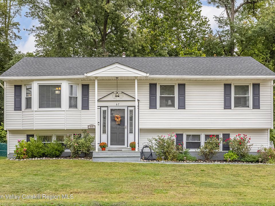 Meticulously maintained and move-in ready, this spacious split-level ranch is located in the highly sought-after Spackenkill School District. Set on a level lot backed by woods, the home offers 3 bedrooms, 1.5 baths, with a flexible layout. The main level boasts refinished hardwood flooring, an updated kitchen with granite countertops and a formal dining room with sliders leading to a large deck—ideal for entertaining or relaxing outdoors. The primary bedroom, along with two additional bedrooms, share a beautifully updated full bath. The finished basement, complete with a convenient half bath, expands your living space and is perfect for a home office, media room, or playroom. Additional highlights include central air conditioning, a 2-car garage, and municipal water and sewer. Situated in the desirable Southgate community close to schools, restaurants, shops, and more, this property blends comfort and convenience.