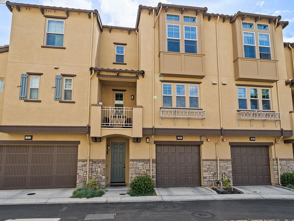 Welcome to this elegant modern townhome with views of the hills and lots of light. This home was built in 2018, with new interior paint, engineered hardwood floors, recessed lighting, triple-pane windows, and dual-zone central HVAC system. An upgraded kitchen with espresso cabinets, stainless steel appliances, subway tile backsplash, quartz countertops, an island with pendant lights and lots of storage, and a balcony of the kitchen. The master bedroom has high ceilings, and a walk-in closet, and the master bathroom has dual sinks and a tiled backsplash in the shower with glass enclosure shower doors. The garage is a 2-car garage with lots of space for storage or a hobby area, EV charger, and a water softener with an RO faucet for drinking water. A private fenced backyard. HOA is $344 monthly. Easy access to Bart station, and highways 680 and 880, making commuting a breeze. Don’t miss out on the gorgeous ready to move in townhome.