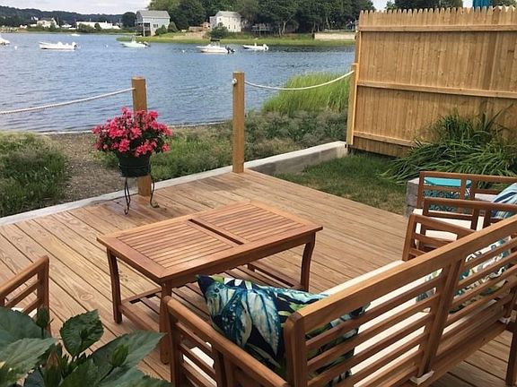 Conveys with mooring rights and proven rental history. Welcome to 67 Cedar Ave, a 2 bed/1 bath cottage on the water. This boutique coastal cottage comes fully furnished and with mooring rights! Recently updated throughout, you'll find a modern kitchen with new full-size stainless-steel appliances, herringbone backsplash and quartz countertops. The custom dinette area accommodates 5-6 people and allows easy entertaining with an open floor plan. Amazing views from this room from the wall of windows onto Blue Bill Cove gives the feeling of being "on the water." Both bedrooms offer Queen size beds and plenty of closet space. The rooms are tastefully decorated with exposed beams, seagrass wallcovering and ceiling fans. The coastal inspired decor throughout the home provides a sense of calm and relaxation. A new full-size W/D and a large front hall closet round out the amenities. Summer nights on the deck with the firepit is a great way to end the day or in the cooler months, enjoy the gas fireplace for a cozy retreat at the end of a long dat. You'll enjoy watching an array of coastal birds, the change of tides and putting around the cove in kayaks. The fun doesn't stop there; residents of the cove can also enjoy paddle boarding, jet skis and of course boating! Located at the north end of Aquidneck Island in vibrant Island Park, easy access to Rte 24, only 25 minutes to Newport & Bristol and a quick jaunt to Providence & Boston.