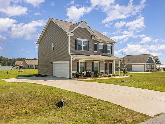Nestled on over half an acre, this 4 bedroom home offers a breath of fresh air & room to roam. Step onto the charming front porch and be greeted by an open floorplan that combines comfort and style. Spacious living area & separate dining room sets the stage for memorable gatherings. The heart of the home is an eat-in kitchen featuring a striking granite island & convenient built-in desk/workspace area. Upstairs, discover 4 generously sized bedrooms, laundry room & a secondary full bathroom. The owner's suite is a true retreat, boasting dual walk-in closets for ample storage. Step outside onto the back patio, where you'll find a perfect ENORMOUS, flat yard; great for gardening or playtime. The possibilities are endless! The 2-car side-load garage accommodates your vehicles and more. Constructed in 2020, this home boasts modern reliability with a roof, HVAC system & water heater that are only 3 years young, ensuring peace of mind for years to come!